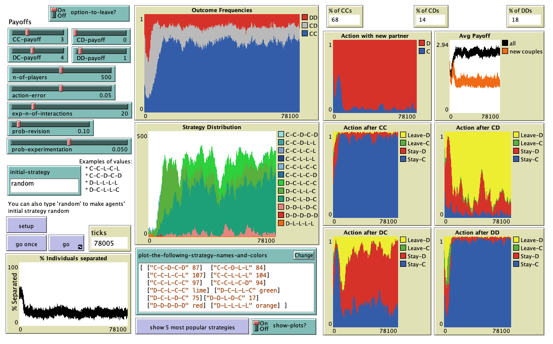 % of DDs: Percentage of couples where both players defected in the current time-step.